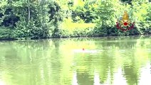 Milano, i vigili del fuoco salvano un capriolo rimasto bloccato nel Naviglio Grande