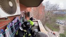 Intervento insolito a Madrid i vigili del fuoco salvano una capra bloccata sul davanzale di una finestra al quinto piano