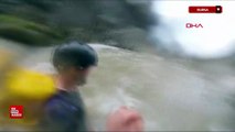 Bursa'da dağcılar yağışlar sonrası su seviyesi yükselen dereden geçerken zor anlar yaşadı