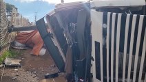 Caminhão de adubo tomba na BR-277 em Cascavel