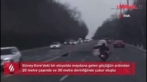 Güney Kore’deki otoyolda oluşan dev çukur hareket halindeki motosikleti yuttu