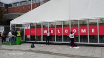 Protesters spray paint 'genocide’ on Labour conference entrance