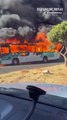 Ônibus do transporte público de Uberlândia é destruído por fogo