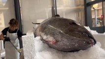 José Luis con el atún rojo del Mercado Central de Zaragoza.