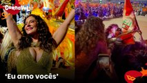 Reverenciada até de viaduto, Paolla Oliveira surge deslumbrante para despedida da Grande Rio
