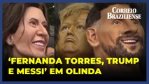 Bonecos gigantes de Fernanda Torres, Trump, Messi e outras personalidades fazem sucesso em Olinda