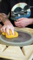 Throwing A Ceramic Clay Pottery Apple On The Wheel