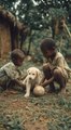 children playing with puppy