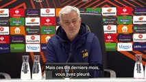 Battu par les Glasgow Rangers (1-3) en huitième de finale aller de la Ligue Europa, Fenerbahce a vécu une soirée compliquée. Fidèle à son style, José Mourinho a marqué les esprits en conférence de presse en réagissant avec sarcasme. Agacé par une question trop longue, le technicien portugais a feint de s’endormir avant de livrer une réponse cinglante.