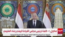كلمة لرئيس مجلس القيادة اليمني رشاد العليمي يعلن نجاح عملية استلام المعسكرات في حضرموت والمهرة وعدن