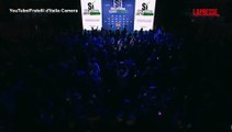 Milano, sale su palco e consegna a Meloni suo libro: "Aspetto dimissioni da Mattarella". Imbarazzo per la premier