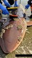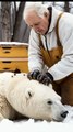 A majestic giant polar bear was found covered in barnacles, and a dedicated rescue team jumped into action! Watch as they carefully clean and restore this incredible creature with gentle brushes. 🧼🖌️ Witness this heartwarming rescue and nature’s beauty in action! 🌊❄️ #PolarBearRescue #WildlifeConservation #Heartwarming