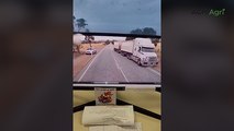 Dashcam captures car driving on the wrong side of the road
