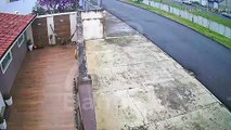 Câmera flagra carro caindo em córrego após ser atingido por veículo que furou preferencial