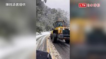合歡山如撒糖霜!積雪2公分成銀白世界 出動鏟雪車(埔里工務段/林保署南投分署提供)