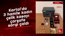 Kartal'da girdikleri daireden çelik kasa çalan Y.E. (21), N.Ş. (20) ve B.B. (22) kaçmak için bindikleri taksinin polis denetim noktasında durdurulmasıyla yakalandı. Yüzlerini gizlemek için şapka takan şüphelilerin içinde yaklaşık 1 milyon lira değerinde ziynet eşyası bulunan çelik kasayı çarşafa sararak götürdükleri anlar güvenlik kameralarına yansırken hamile oldukları öğrenilen şüpheliler tutuklanarak cezaevine gönderildi.
