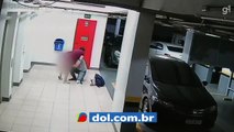b'mulher da1 a0 luz com ajuda do marido na garagem do pra9dio de casa'