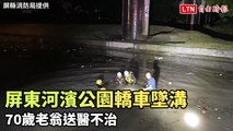 屏東河濱公園轎車墜溝 70歲老翁送醫不治(屏縣消防局提供)