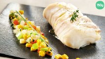 Dos de cabillaud à la vapeur et ratatouille de maïs