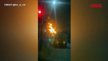 Esplode un distributore a Roma, l'incendio visto dall'elicottero dei Vigili del Fuoco