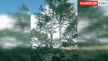 Ayı korktu, ağaca tırmandı