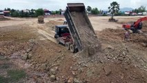 Start a New Project! Landfill on Flooded Area by Team 5Ton Trucks and Bulldozer D20P Push Soil