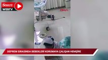 Sağlık çalışanlarının depremde bebek nöbeti kamerada
