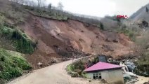 Trabzon'da heyelan sonrası mahalle yolu kapandı