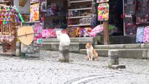 Yalova'da dev dalgalar sahile vururken, kıyıda avlanan su samuru görüntülendi