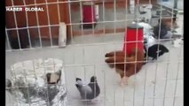 Kendini tavuk zanneden güvercinin hareketleri kahkahaya boğdu