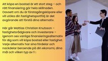 Funderar du på att köpa din första bostad? I den här videon delar Mattias Christian Knutsson med sig av enkla och smarta tips för att hjälpa dig komma igång. Lär dig varför det är viktigt att skaffa ett lånelöfte, göra en budget, välja rätt läge och alltid göra en besiktning. Mattias förklarar också hur rätt personer – som en bra mäklare och bankkontakt – kan hjälpa dig att undvika misstag. Titta nu och känn dig tryggare i ditt bostadsköp!