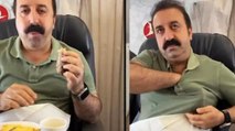 Şırdancı Mehmet uçaktaki menüyü beğenmedi göğsünden şırdan çıkarıp yedi