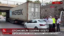 Kocaeli'de üst geçide çarpan tırın üstündeki konteyner, otomobilin üzerine kaydı
