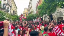 La afición del Athletic tiñe de rojiblanco el centro de Sevilla