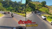 Biker With Cold Tires Lowslides on Road and Falls off Cliff's Edge