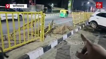 फरीदाबाद में सड़क हादसा, डिवाइडर से टकरा कर चकनाचूर हुई कार, देखें वीडियो