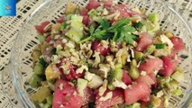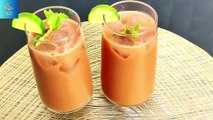 -Take a plate add red chili powder , salt and mix it well. -Take a serving glass rim the glass with lemon then coat with chili salt mixture set aside . -Take Frozen water melon slice grate them. -Add grated water melon into serving glass add lemon juice , add soda mix it well. -Garnish with mint leave and lemon slice.