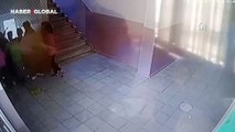 Dikenli tellere sıkışan kedinin kurtarılma anları kamerada