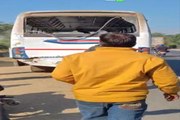 हाइवे पर साठ सवारियों से भरी बस को डम्पर ने मारी टक्कर, बस व कार क्षतिग्रस्त