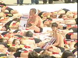 La protesta incluye pinturas, poesía, canto y también performance en defensa de los toros. Veamos.