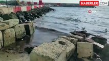 Tekirdağ'da poyraz sonrası deniz yüzeyi kızıl yosunla kaplandı