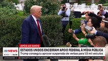 00:00O presidente dos Estados Unidos, Donald Trump, assinou uma ordem executiva para cortar o financiamento de dois meios de comunicação públicos, que ele acusa de serem tendenciosos.