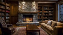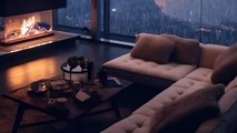 Cozy Luxury Living Room In Forest with Fireplace and Rain Sound | Healing Insomnia, Reduce Stress Luxurious Cozy Cabin Ambience - Rain & Crackling Fire Sounds at Night in forest- Sleep, Read, Relax