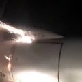 لحظة اشتعال محرك طائرة ركاب