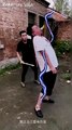 00:16Oops, the man is still tied up