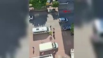 Sokak ortasında korku dolu anlar! Bıçaklı saldırganı taşla kovaladı