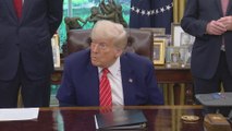 Donald Trump gushes over British ambassador’s ‘beautiful accent’ during trade deal announcement