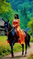 Horses racing in girl