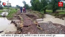 भारी बारिश भी न रोक सकी रास्ता, दमोह में ग्रामीणों ने बांस से तैयार किया पुल
