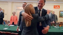 Meloni incontra a Washington Zelensky, Rutte e i leader europei, le immagini degli abbracci